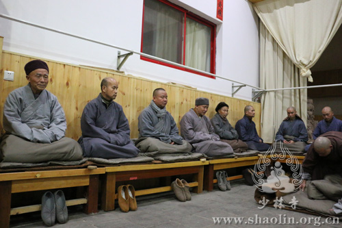 【嵩山少林寺武僧团培训基地 讯】2014年11月26日,农历十月初五,为达摩祖师诞辰纪念日,禅宗祖庭少林寺举行一年一度的冬季“精进七”禅七法会。当日下午,起七仪式在少林寺禅堂圆满举行。此次禅七共七个七,为期四十九天。参加本次禅七的法师有103单。本次禅七的首座是绍云长老、修圆法师、本如法师,西堂是耀融法师、悟醒法师、隆中法师,后堂是延典法师,堂主是普明法师、仁觉法师,维那是延榕法师,知客是延典法师。