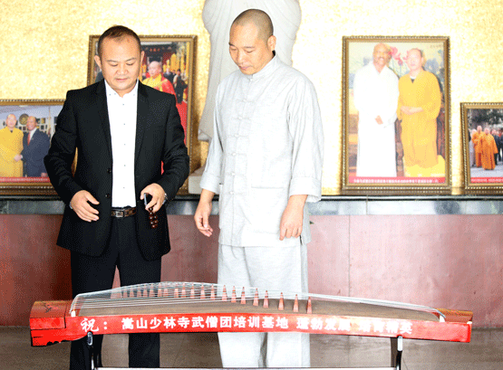 2014年10月3日,基地教育集团学员何家豪的父亲,山东艺达民族乐器有限公司总经理何大鹏来到校园,为学校赠送了六架古筝,以表达学校对自己孩子的关爱。基地教育集团总负责人、总教头释延鲁大师亲切接待了何大鹏先生,感谢何先生对学校文化建设的大力支持。并当场把六架古筝发放到南北校区,要求南北校区保护好、管理好、使用好古筝,让学校学员在紧张的学校训练中,抽出一点时间,学习古筝、练习古筝,活跃文化生活,陶冶思想情操,用优美的琴声表达情感,歌颂祖国,歌颂学校。