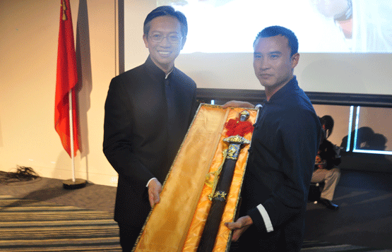 中国驻新西兰大使王鲁彤及夫人在使馆举行国庆65周年招待会上,学员们再次为世界多个国家驻新西兰大使及馆员演出少林功夫,受得了各国大使的高度赞誉。