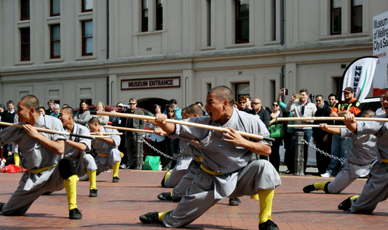 为使广大市民都能看到少林武术,学员们在惠灵顿市街头,进行了近10场演出,市民纷纷拍手叫绝。少林武术一时成了广大市民纷纷议论的话题,少林功夫唱响了新西兰。