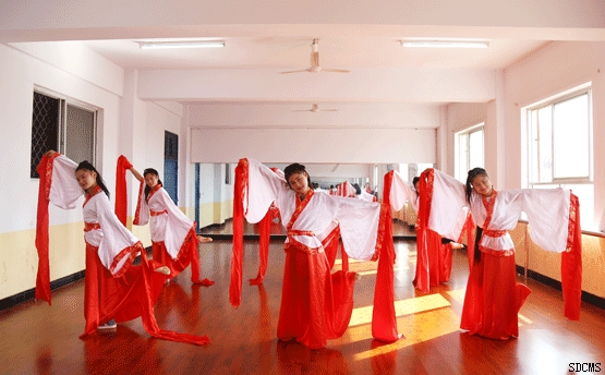 嵩山少林寺武僧团培训基地女学员爱“武”装,也爱“舞”装。基地教育集团成立有舞蹈班,舞蹈老师每周为学员们上两节舞蹈课,练习舞蹈基本功,排练舞蹈节目。女学员们勤学苦练,舞姿优美,成了基地教育集团文化艺术教学方面的一道靓丽的风景。每年,基地教育集团组织的五四青年节、中秋节等各种文艺晚会,都有他们精彩的展示。