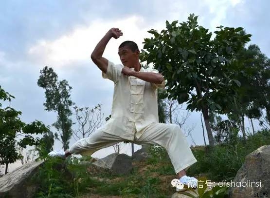 图:少林寺武术学院(少林寺武僧团)的武僧在学校的外围认真的在练习着正宗的少林功夫。
